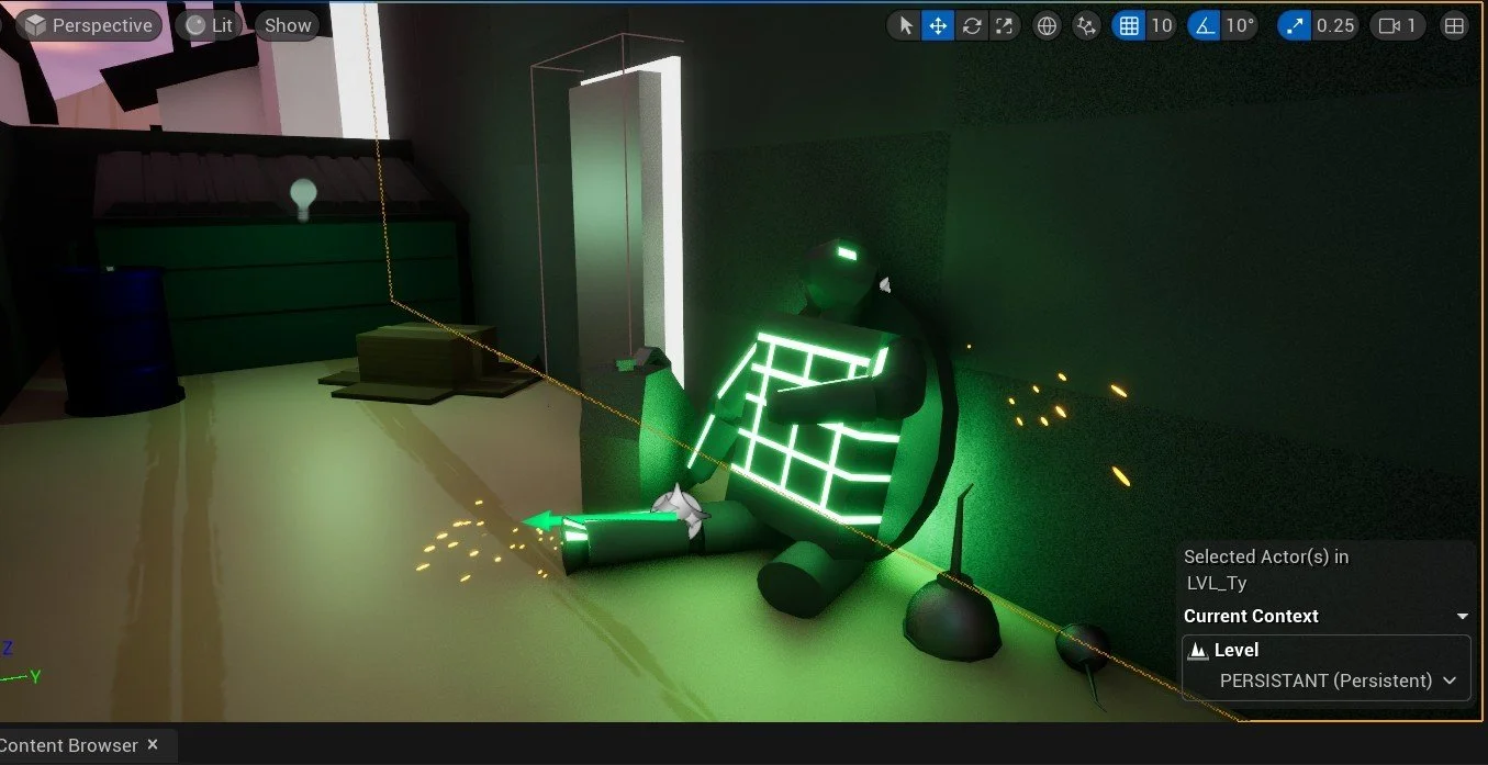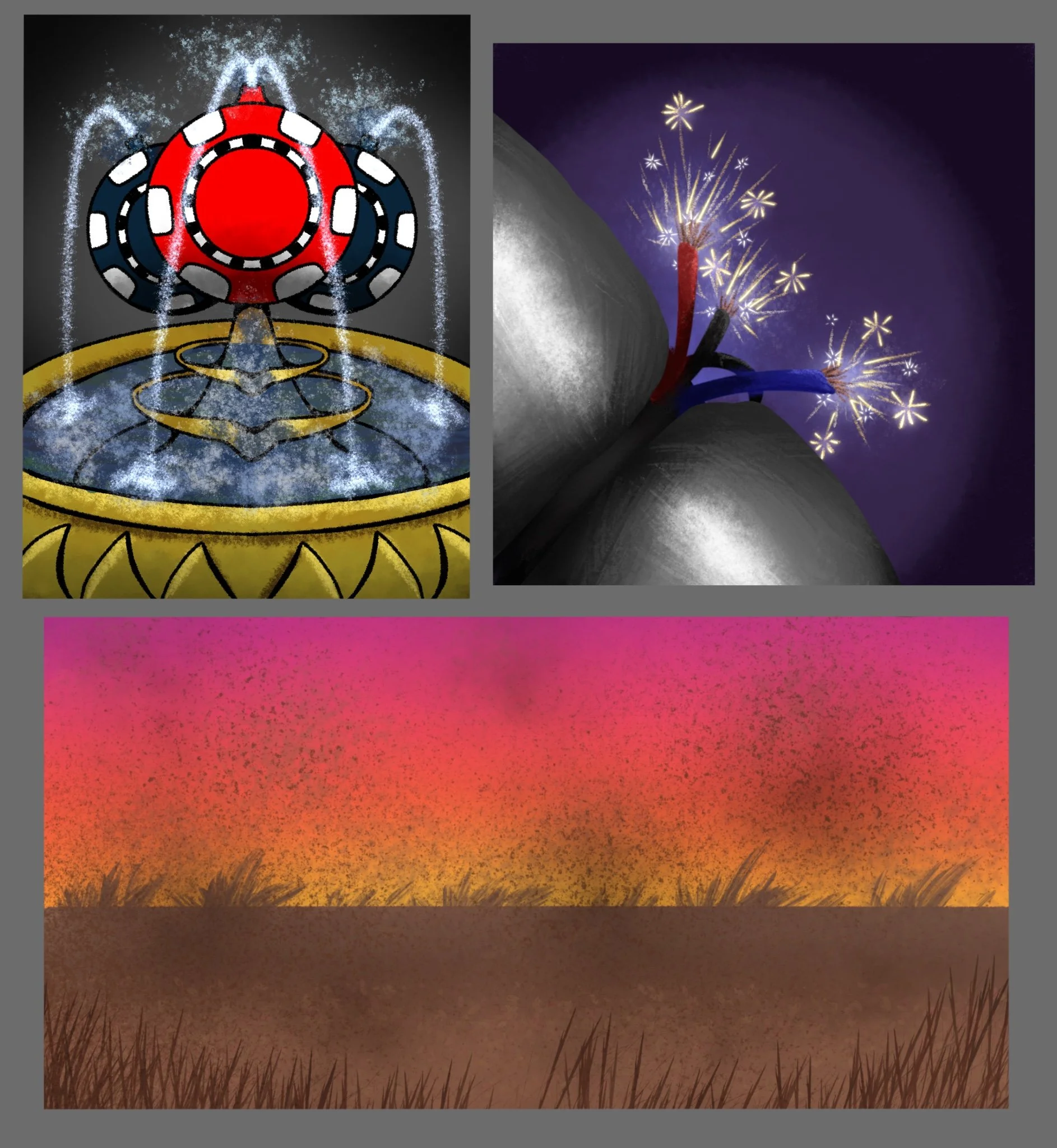 During my time working on Two of Parts, I was the VFX artist and environment help. I made several VFX for both the exterior and interior levels; this included a 3-level firework VFX, falling petals/confetti, and a spraying fountain. While helping my environment teammates, I made several small props such as plates and lamps, and larger props like chairs and tables. Near the beginning of the project, I helped make two NPC character models along with extra parts to work as props to scatter in the levels.